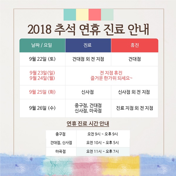진료 및 예약에 참고하시어 차질 없으시길 바랍니다.