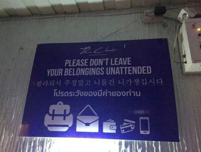 태국의 어떤 클럽 주의문